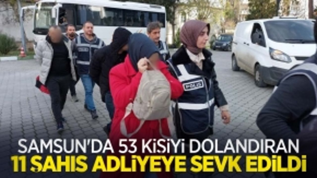 Samsun merkezli 6 ilde düzenlenen dolandırıcılık operasyonuyla ilgili gözaltına alınan ve 53 kişiyi internet üzerinden dolandırdıkları tespit edilen 11 şüpheli, adliyede sevk edildi.