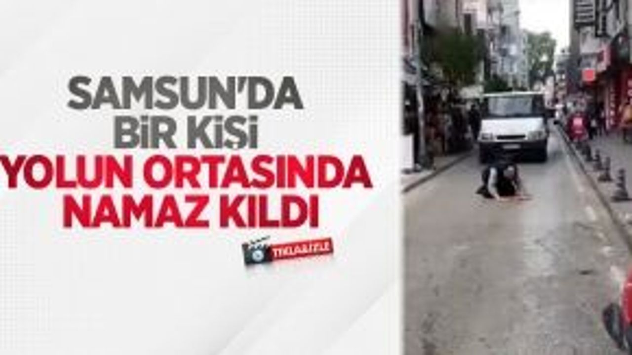 Samsun'da bir kişi yolun ortasında namaz kıldı