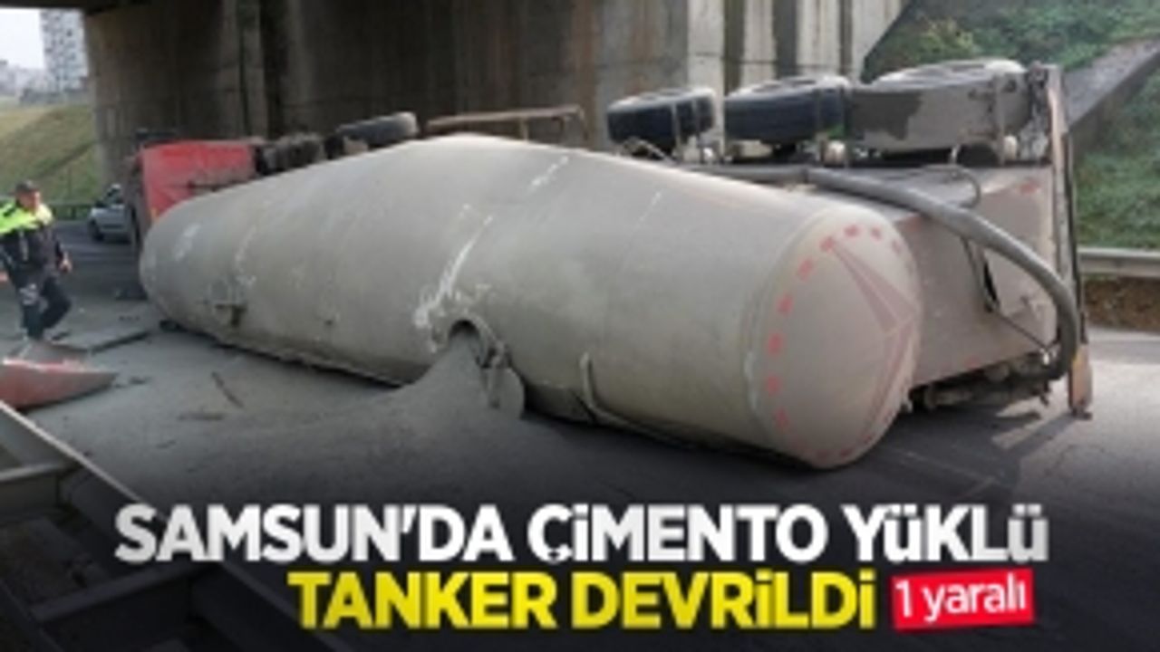 Samsun'da çimento yüklü tankerin devrilmesi sonucu meydana gelen trafik kazasında 1 kişi yaralandı.