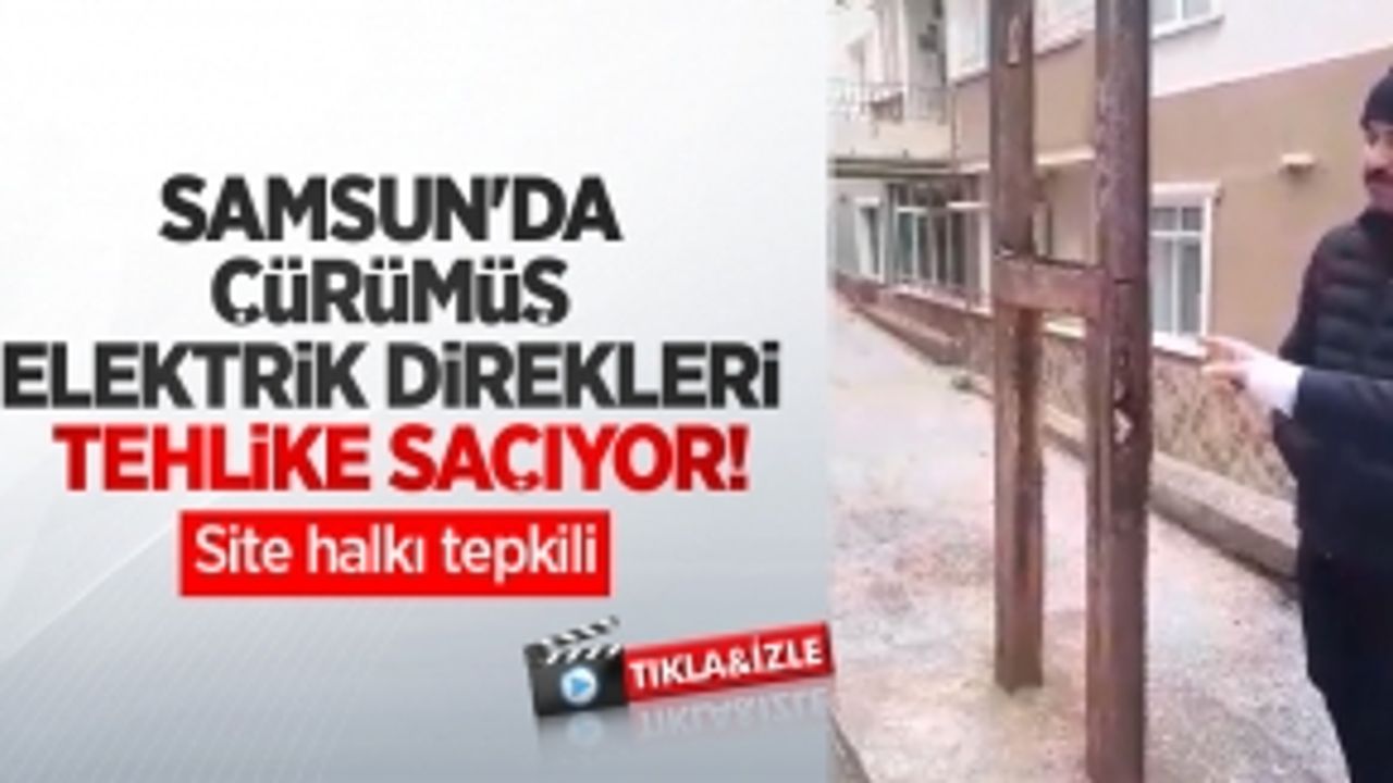 Samsun'da bir öğretmenler sitesi içerisinde bulunan elektrik direkleri çürümüş vaziyette bulunuyor. Site sakinleri yıkılmak üzere olan direklerin faciaya yol açabileceğini vurgularken yetkililerin müdahale etmesini bekliyor.