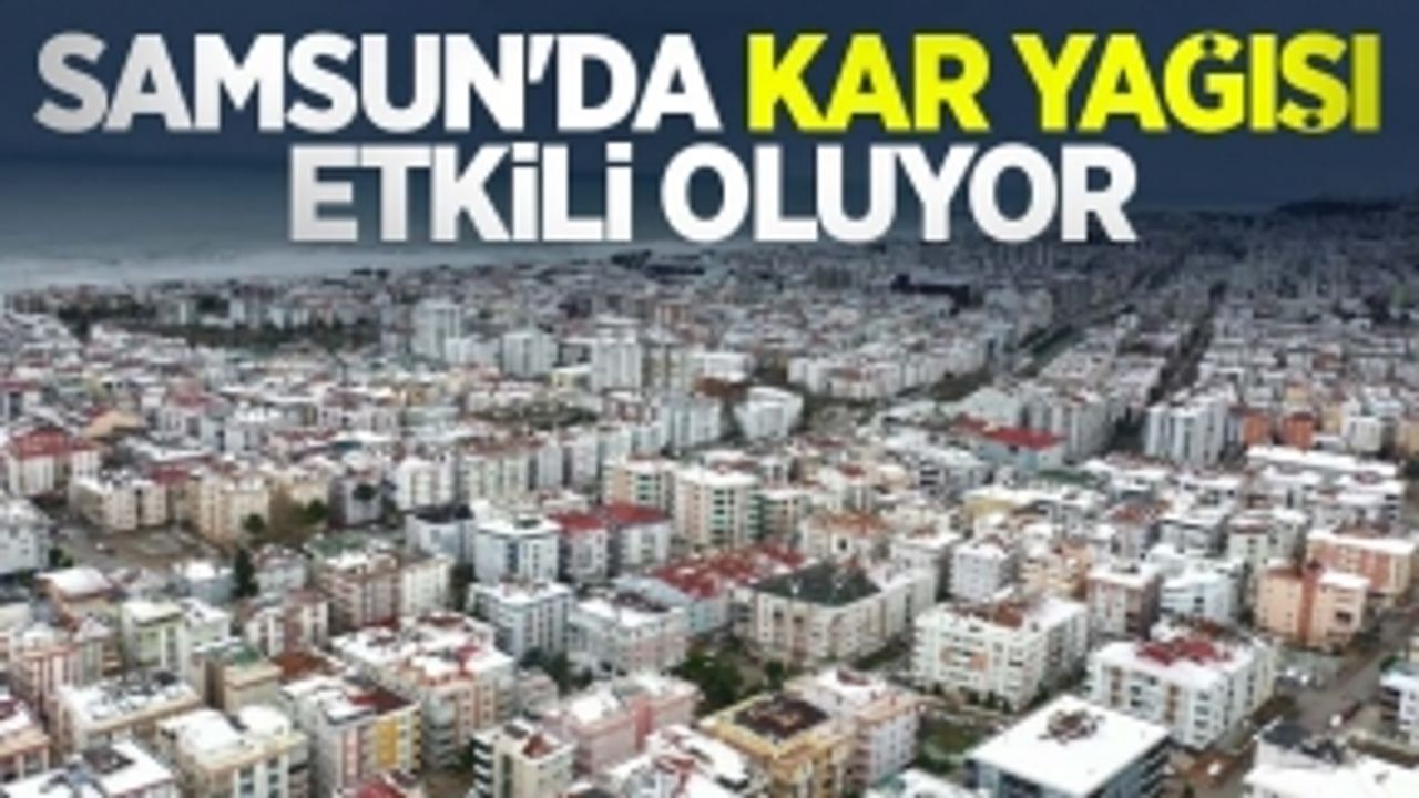 Samsun’da gece başlayan kar yağışı sonrası şehir merkezinde arabaların üstü ve evlerin çatıları beyaza büründü.