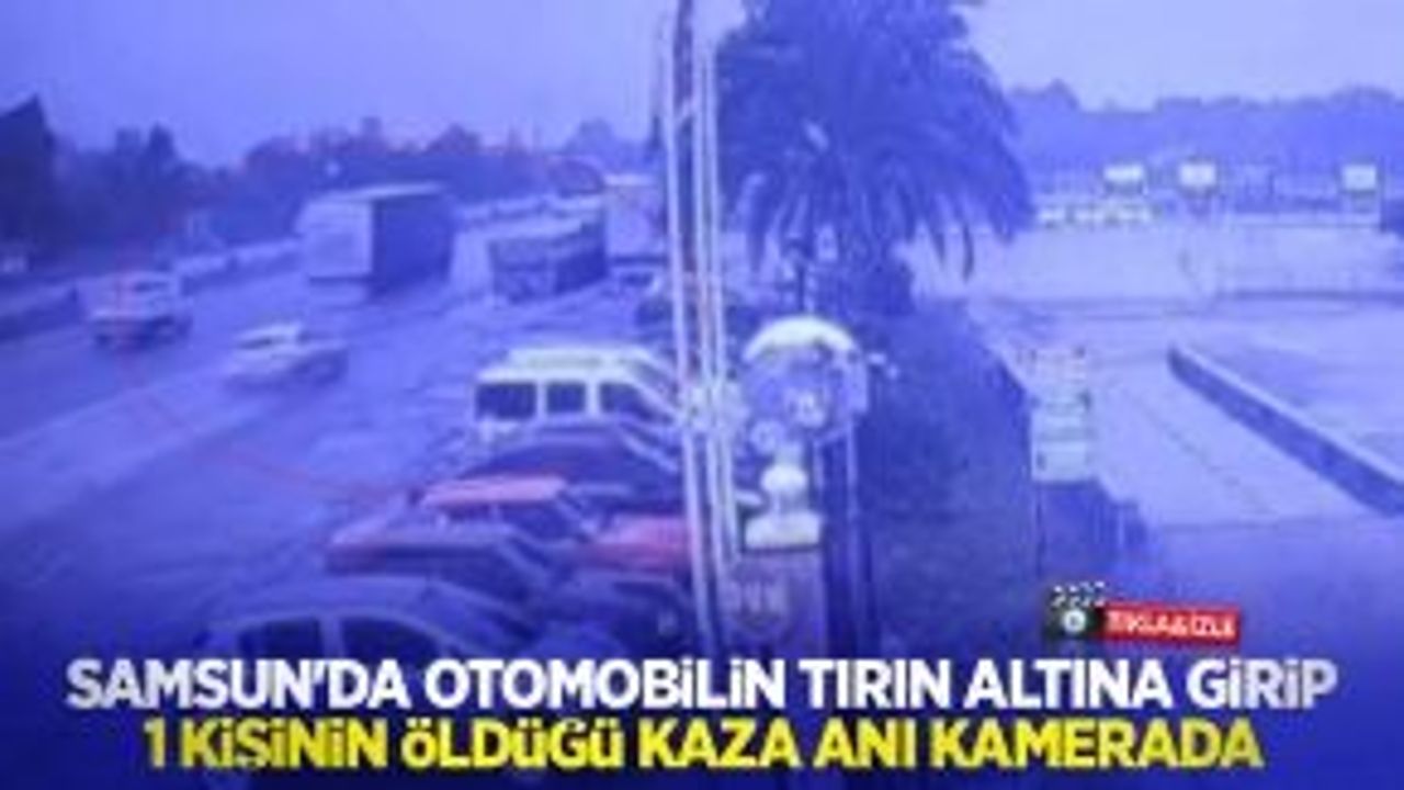 Samsun'da otomobilin tırın altına girip 1 kişinin öldüğü kaza anı kamerada