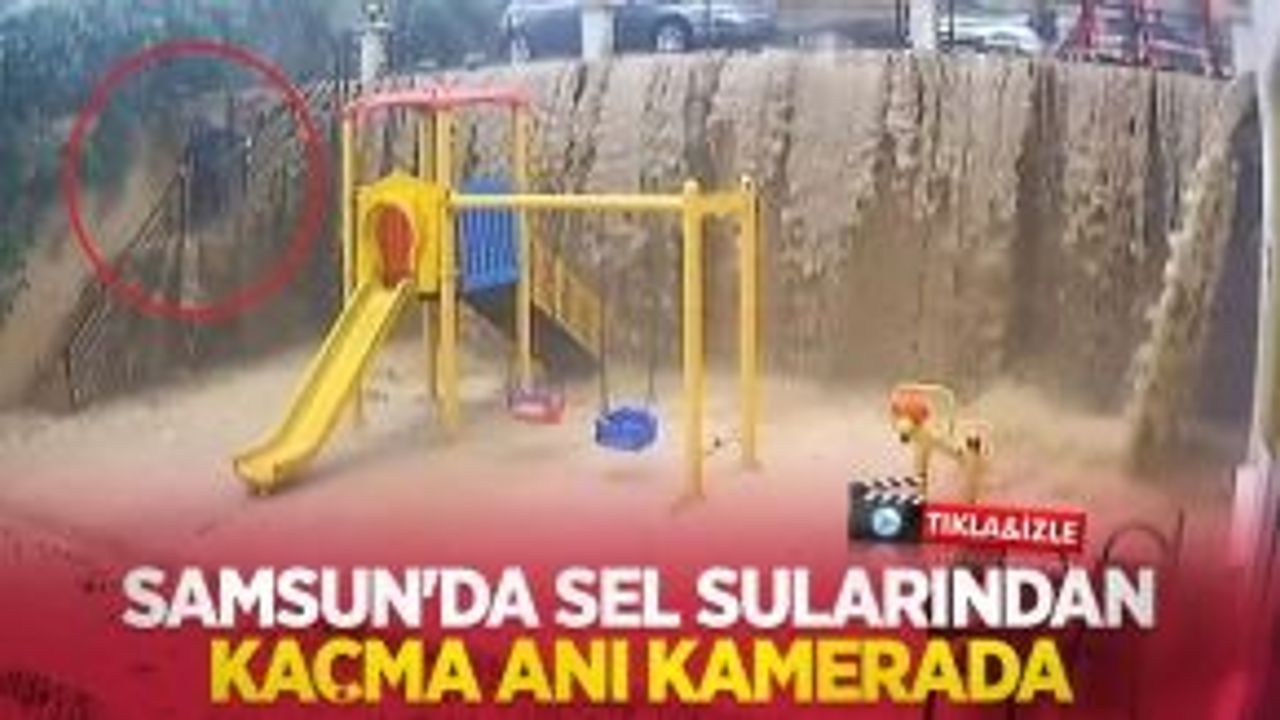 Samsun'da sel sularından kaçma anı kamerada