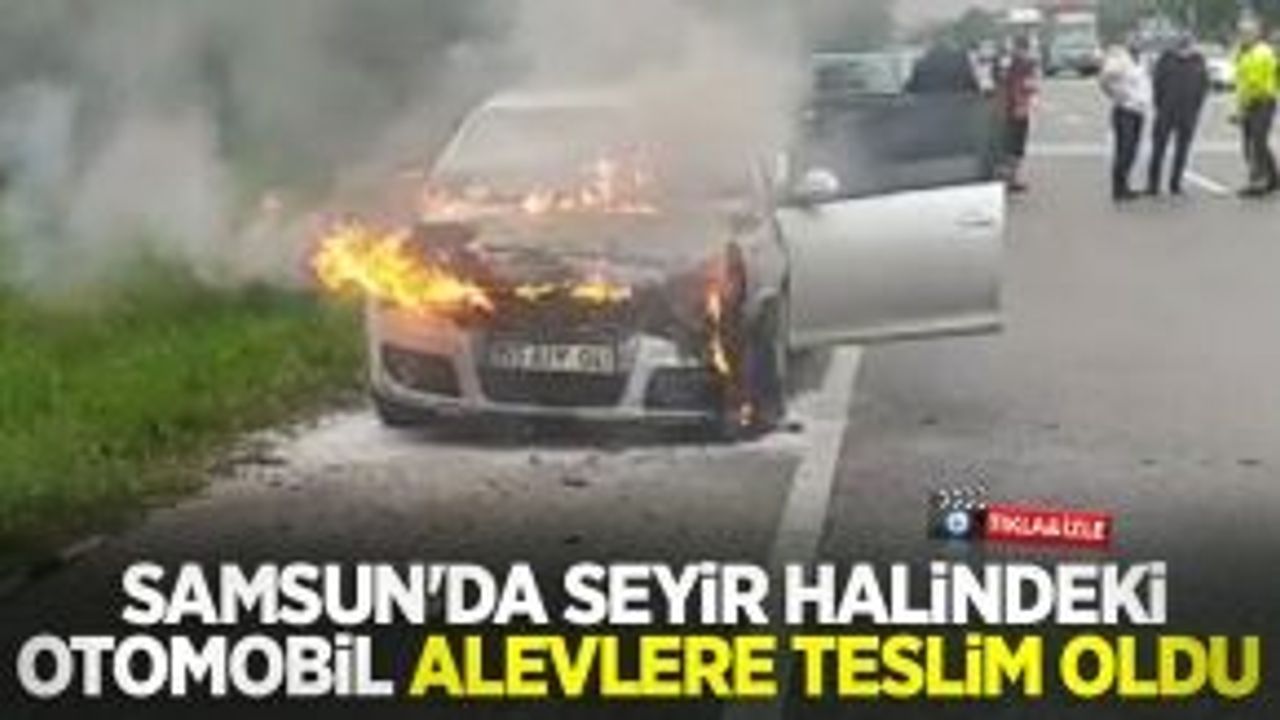 Samsun'da seyir halindeki otomobil motor kısmından yanmaya başlayarak adeta alev topuna döndü.
