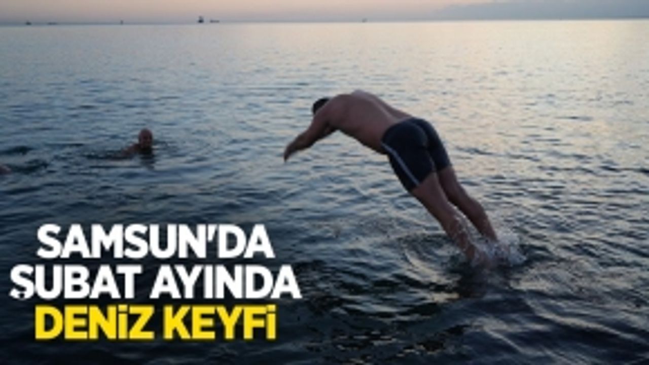Samsun'da farklı mesleklerden 15 kişilik arkadaş grubu, yaz-kış demeden denize giriyor. Bu yıl Şubat ayında hava sıcaklığının 22 dereceye yükselmesini fırsat bilen arkadaş grubu, Karadeniz'in soğuk sularında kulaç attı.