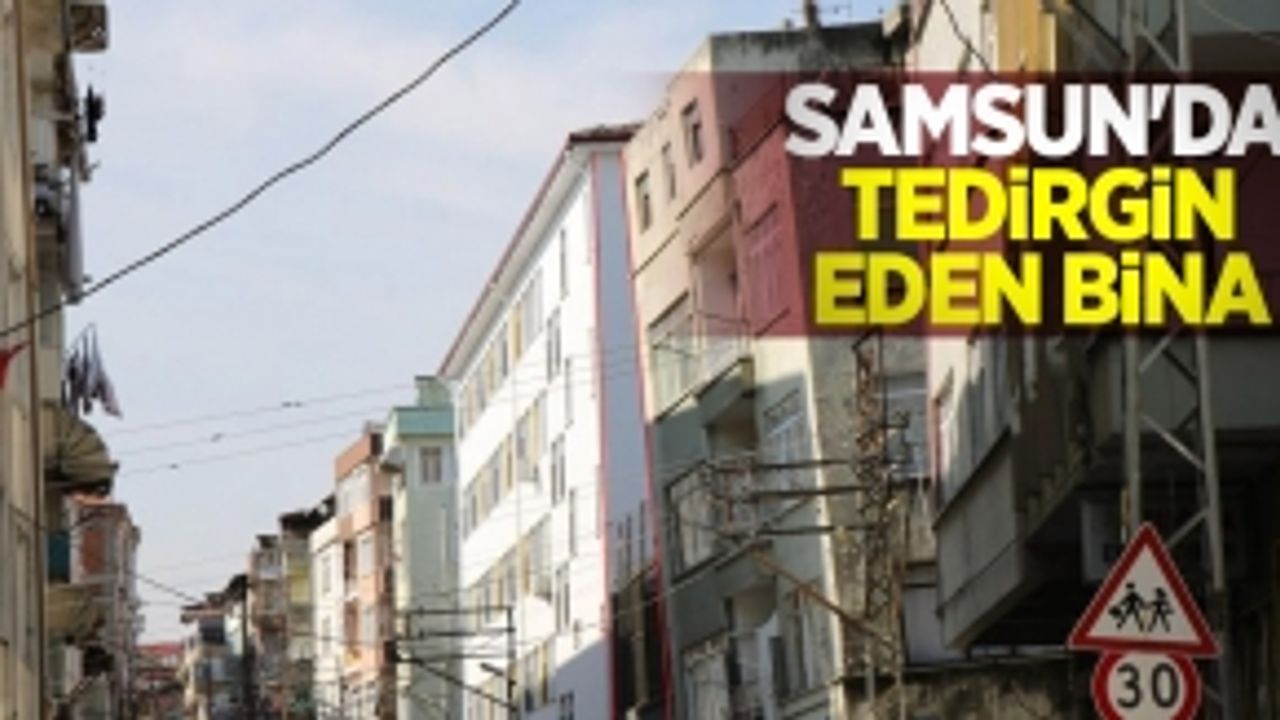 Samsun'da zemini kayan ve önündeki yola doğru eğilen 4 katlı bina, mahalle sakinlerini endişelendiriyor.