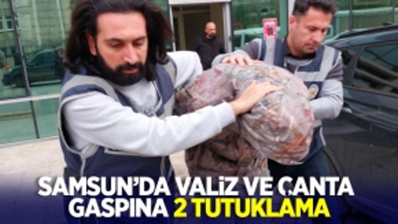 Samsun'da bir kadının valizini ve çantasını gasp ettikleri iddia edilen 2 kişi polisin takibi sonucu yakalandı ve çıkarıldıkları mahkemede tutuklandı.