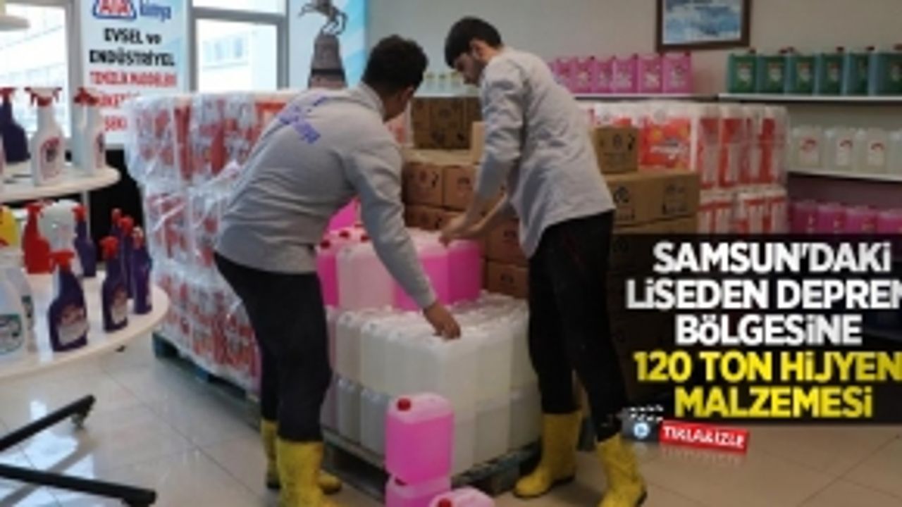Samsun'da Atakum Mesleki ve Teknik Anadolu Lisesi öğretmen ve öğrencileri, yoğun mesai harcayarak ürettikleri 120 ton hijyen malzemesini deprem bölgesine gönderdi.