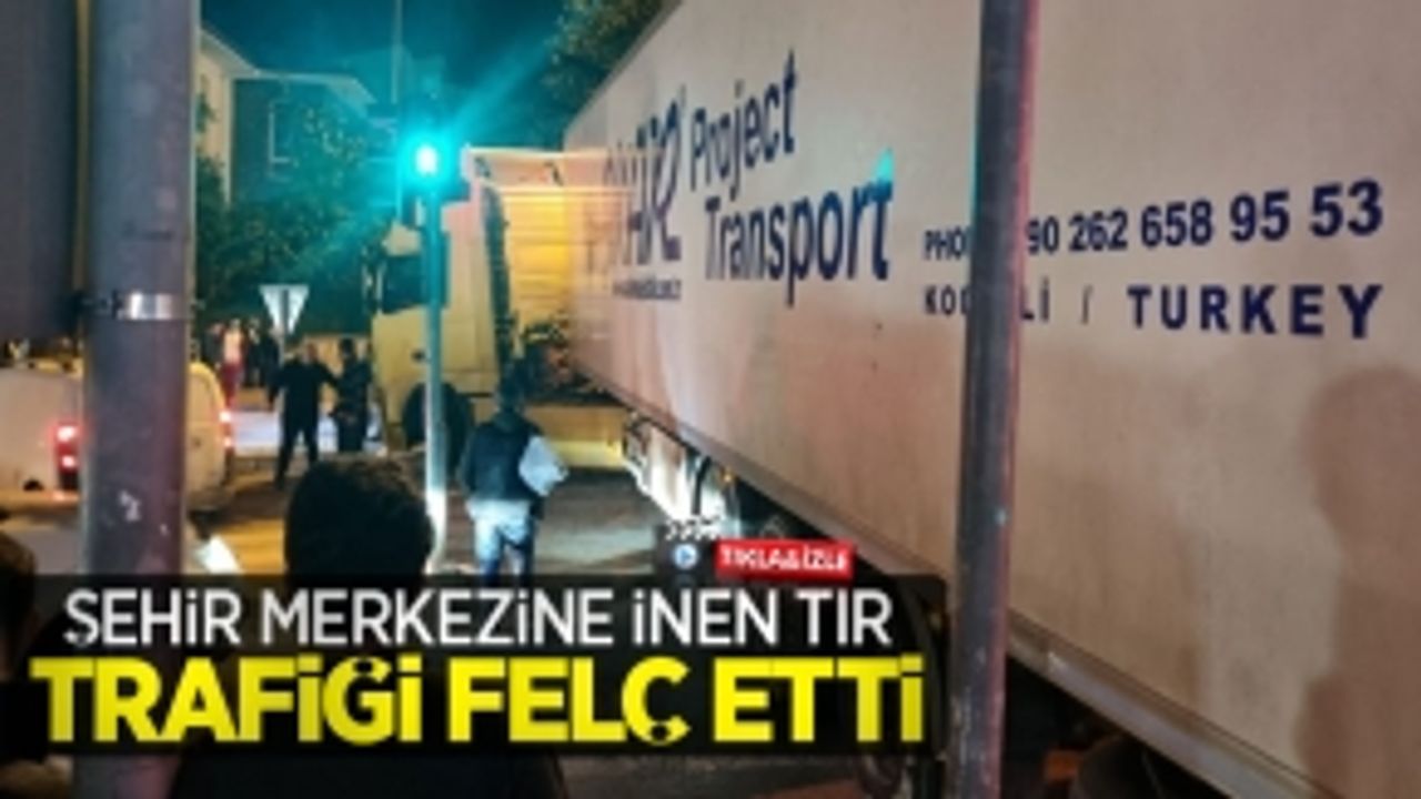 Samsun'un en işlek caddelerinden biri olan Çiftlik Caddesi'ne giren dorseli tır trafiği felç etti.