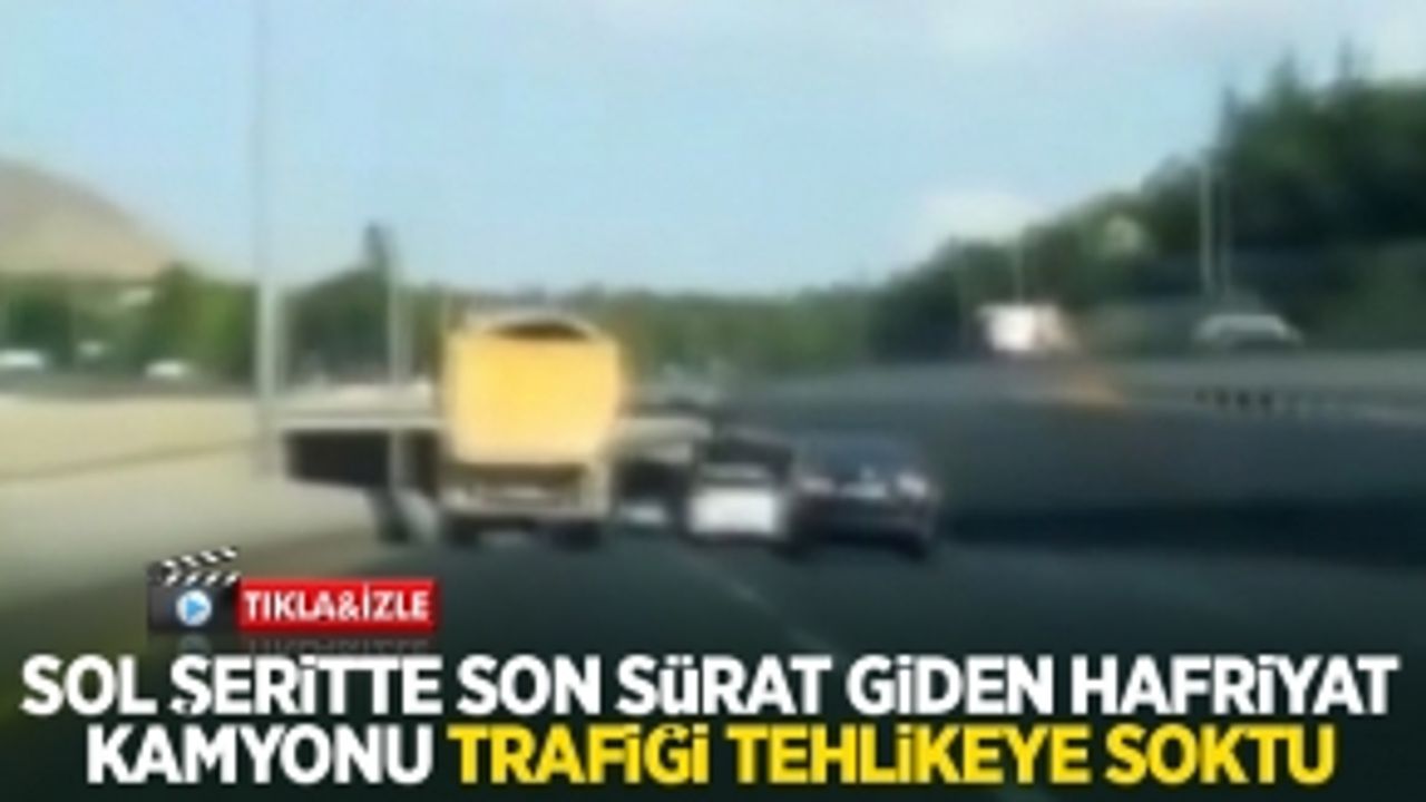 Sol şeritte son sürat giden hafriyat kamyonu trafiği tehlikeye soktu