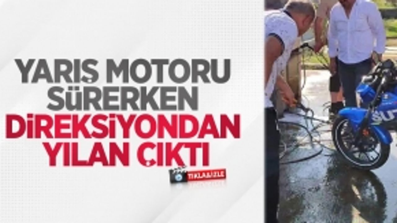 Yarış motoru sürerken direksiyondan yılan çıktı