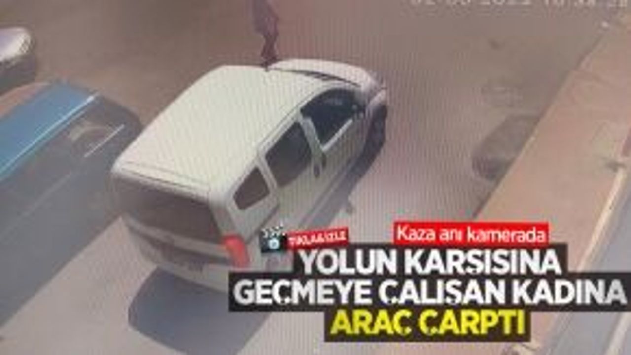 Yolun karşısına geçmeye çalışan kadına araç çarptı: Kaza anı kamerada
