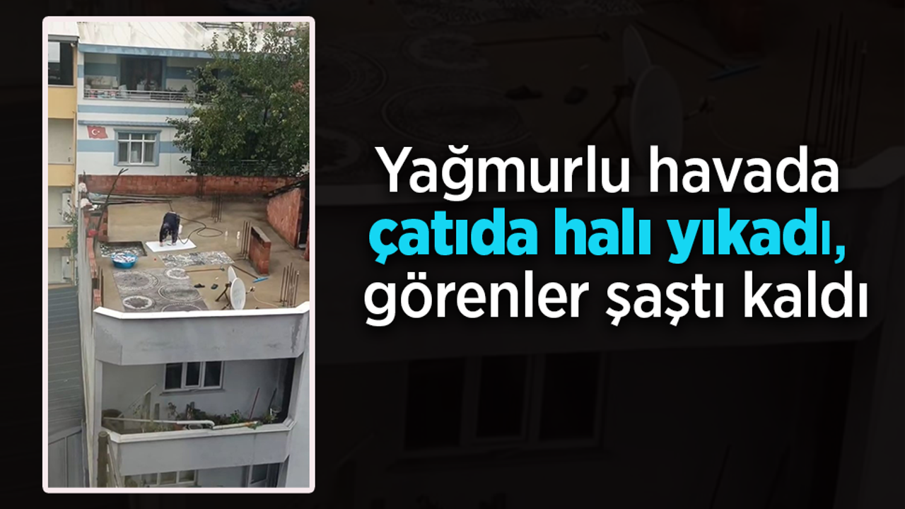 Bursa’da barajlar boşalmasıyla sular kesilmeye başladı. Bir yandan da yağmur yağışı başladı. Ancak bu yağışlar barajlar için şimdilik yeterli değil. Belediyenin uyarısı ve kesintilere rağmen bir kadın apartman çatısında halı yıkarken görüntülendi. İlginç anlar çevredeki vatandaşların dikkatinden kaçmadı. Yağmurun altında çatıda halı yıkayan kadını görenler, o anları cep telefonlarıyla kaydetti.